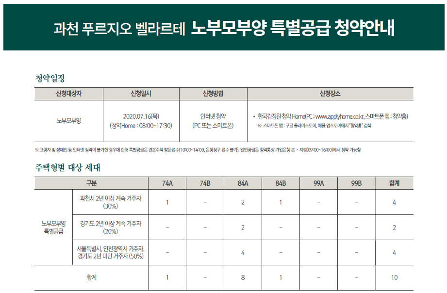 공급물량 30%는 과천시 2년이상 거주자 1순위 당해, 20%는 경기도 2년이상 거주자 1순위 기타, 나머지 50%는 서울, 인천, 경기도(2년미만) 거주자 1순위 기타 순으로 모집한다.
