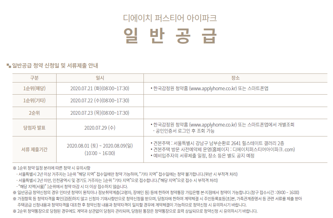 당첨자 발표 및 계약 일정