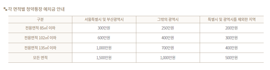 개포 각 면적별 청약통장 예치금 안내