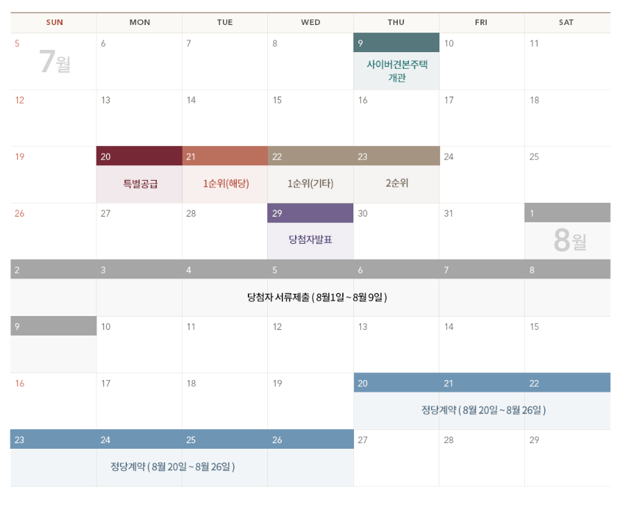 청약 일정(특공, 일반 모두)