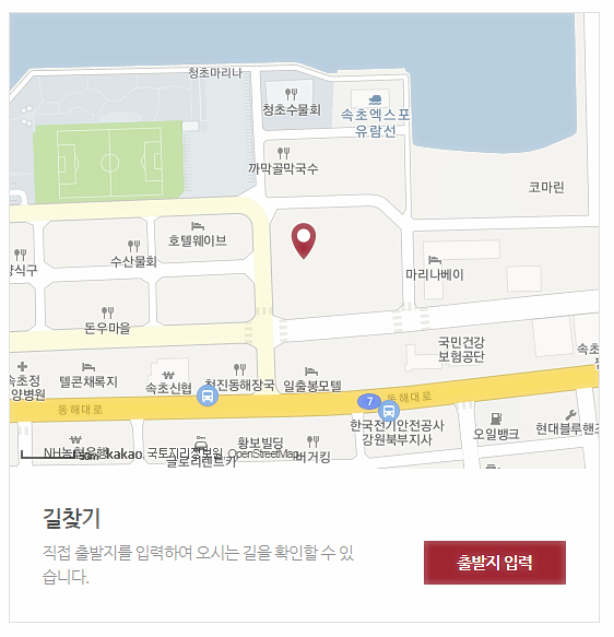 속초시외버스터미널이 도보 5분 거리에 위치해 있으며 수복로와 번영로‧금강대교‧설악대교 등을 통해 속초시내를 자유롭게 이동할 수 있다. 동해고속도로 속초IC를 10분 내에 진입할 수 있어 서울~양양 고속도로로 빠른 이동이 가능하다. 56번 지방도, 7번 국도, 속초국제여객, 크루즈터미널 등 광역 교통망의 이용 역시 수월하다.