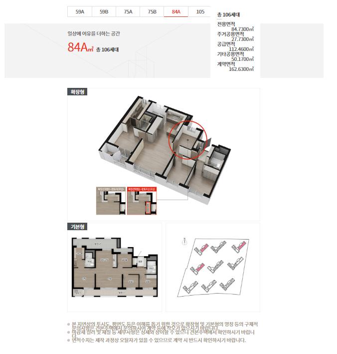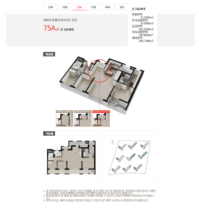 전 세대 채광·통풍 강화를 위해 남향 위주로 배치된다.