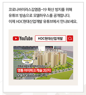 HDC현대산업개발과 롯데건설이 7월 사이버 견본주택을 통해 선보이는 '영통 아이파크 캐슬 3단지'는 주변으로 녹지공간이 풍부해 쾌적한 주거생활이 가능하다. 인근으로 글빛누리공원, 지성공원, 잠원공원 등 5만여㎡ 규모의 녹지공간이 조성돼 있으며 단지 옆 원천리천을 통해 신동수변공원까지 이어지는 산책로도 이용할 수 있다.