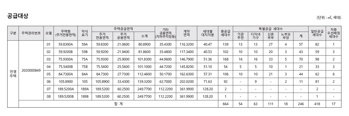 - 기타 서울시, 인천광역시 거주자의 경우 입주자모집공고 상 청약예치기준 금액 참고