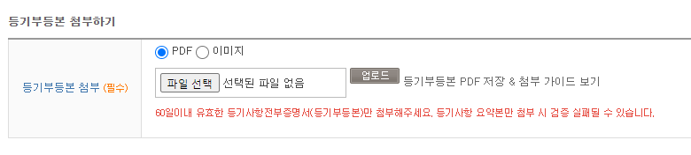 등기부등본을 PDF파일로 첨부하면 확인하는 방식입니다.