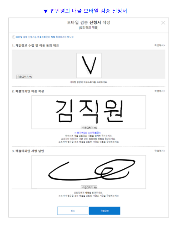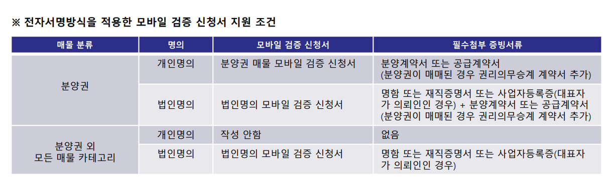 ※ 모바일 검증 신청서의 전자서명방식 지원