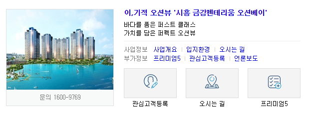 시화 MTV는 수도권 남부의 새로운 첨단복합산업단지이자 해양 레저 산업의 중심지로 조성되고 있는 신도시이어서 시흥 금강펜테리움 오션베이는