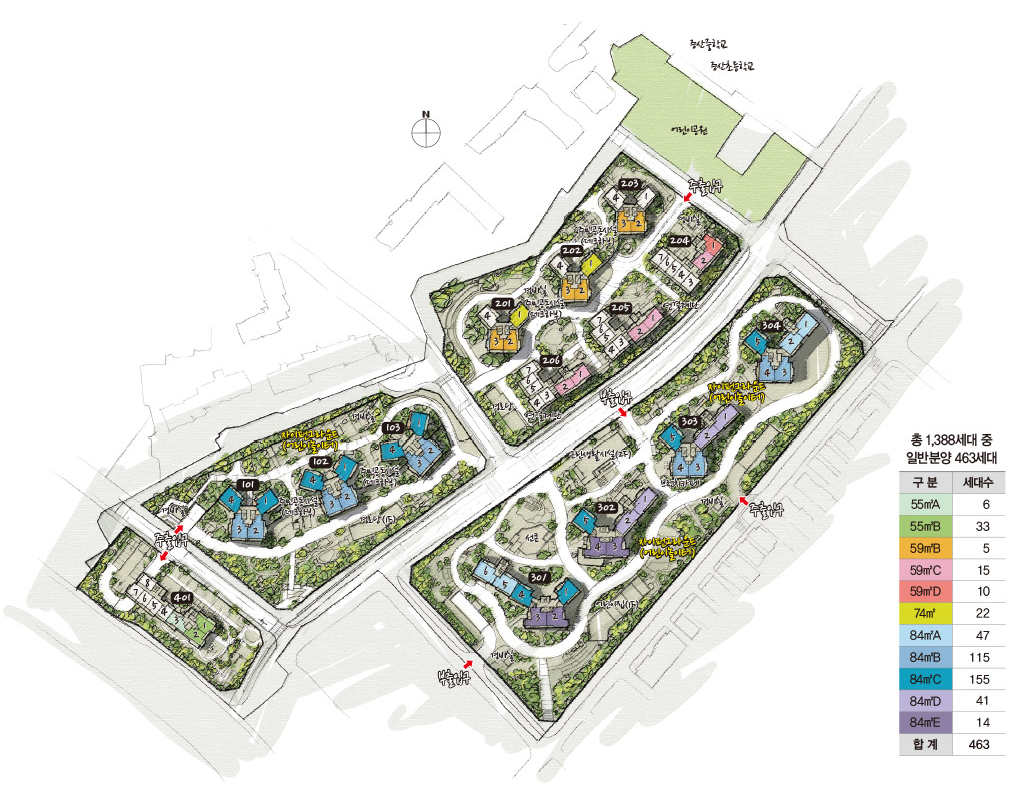지하 3층~지상 30층, 15개 동, 1223가구(전용 39~84㎡)로 건립된다. 일반분양은 452가구다.