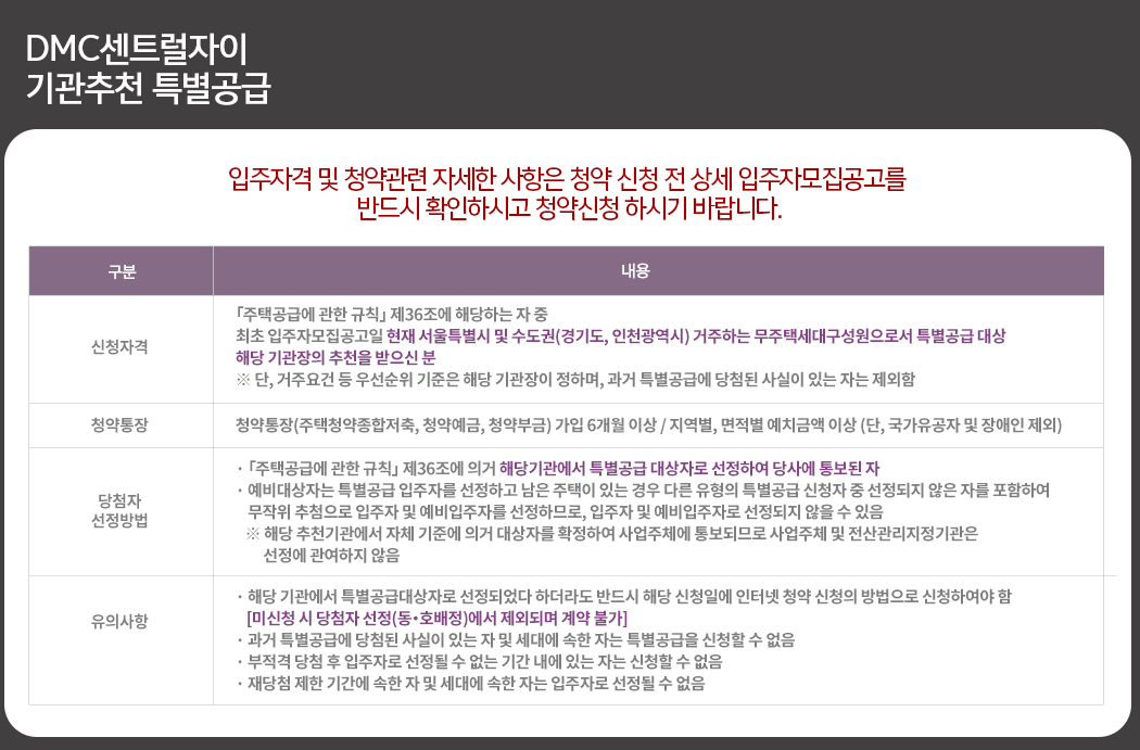 dmc 센트럴자이 분양가 분양 평면도 청약