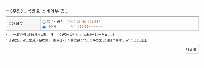 주민 등록번호 공개여부 검증.