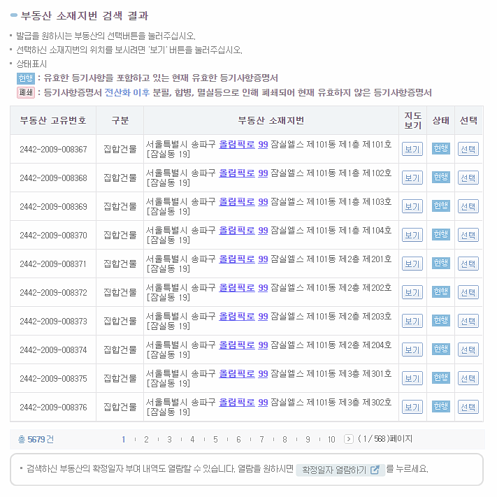 잠실에스 단지 1동 101호를 발급, 열람해 볼께요.