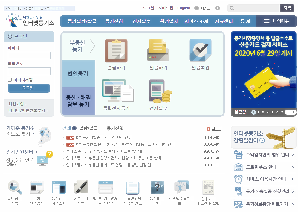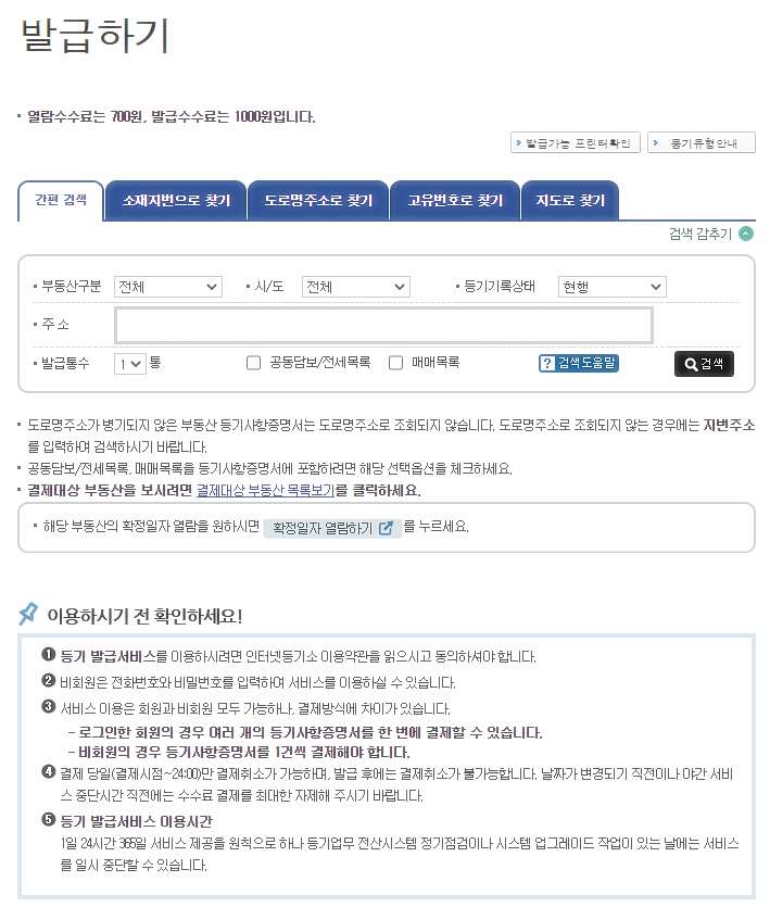 인터넷 등기부등본 발급에 대해