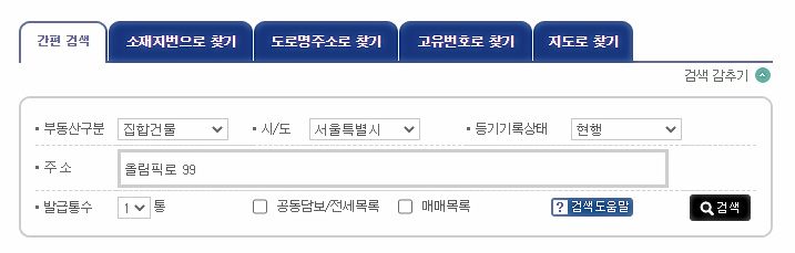"인터넷 등기소" 검색하면 바로