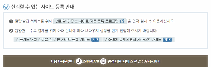 신뢰할 수 있는 사이트 등록 안내