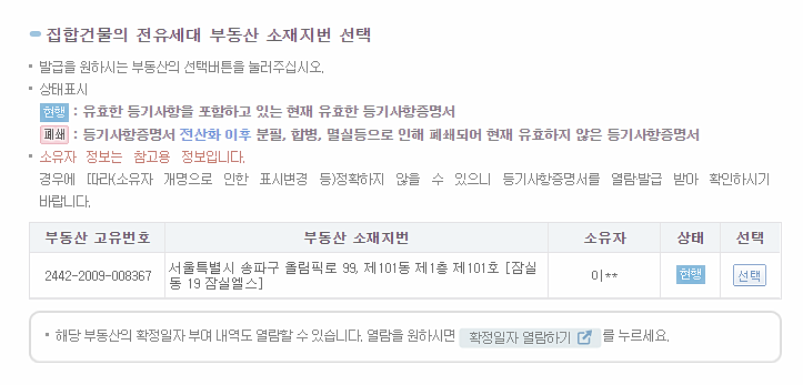 등기부등본 열람을 하는데요.