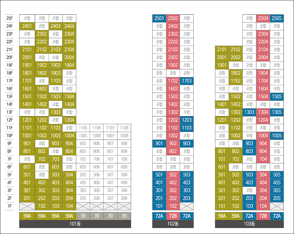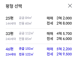 아래에서 확인 가능합니다. 79타입과 97A, 96B 3.6억 ~ 4.4억 구성입니다.