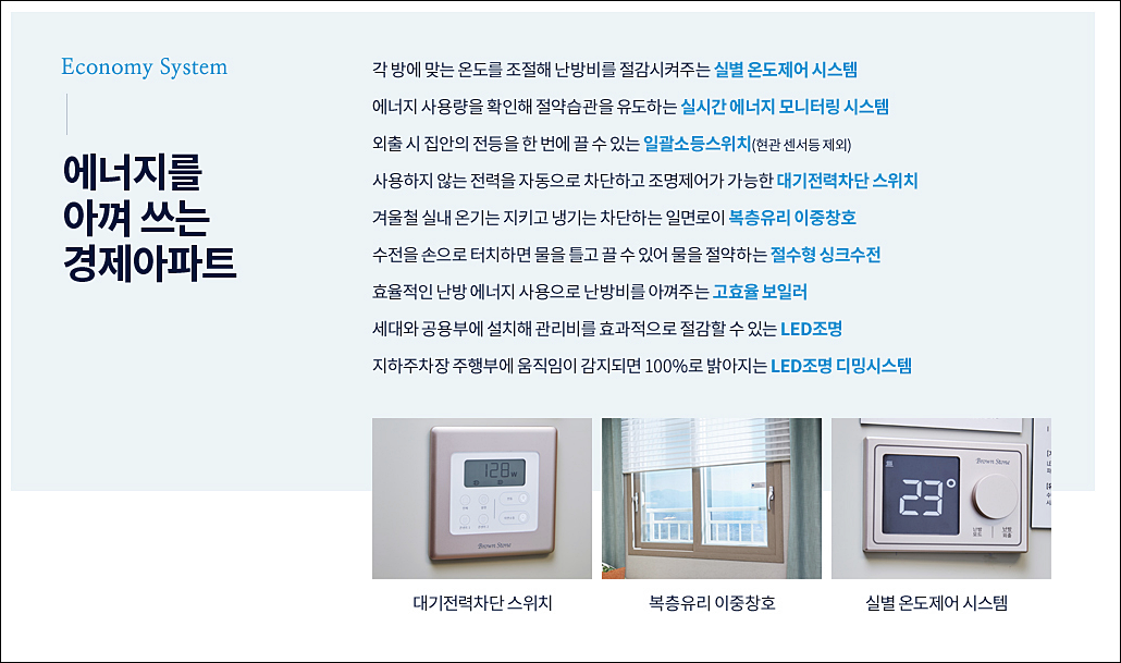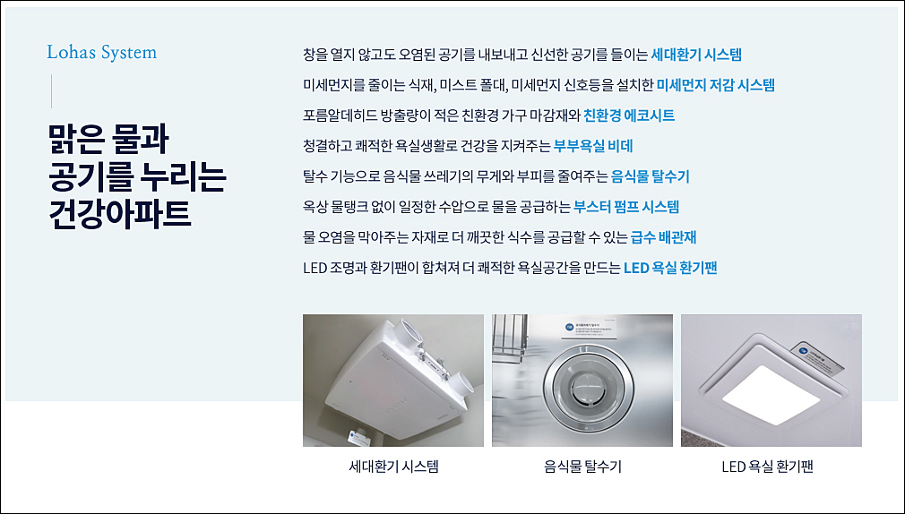 또한, 세대 내부에는 세대환기 시스템, 미세먼지 저감 시스템, 친환경 가구 마감재와 친환경 에코시트로 집 내외부의 공기오염 걱정을 줄였다. 실별 온도제어 시스템, 실시간 에너지 모니터링 시스템, 일괄소등스위치, 대기전력차단 스위치, LED조명 등으로 에너지 절감에도 도움을 줄 예정이다.