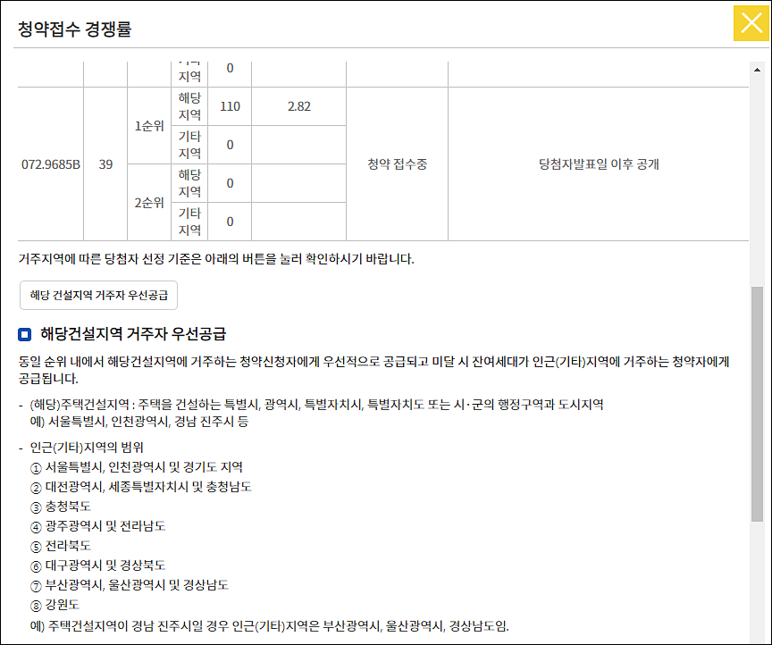 청약접수 경쟁률 : 우선공급
