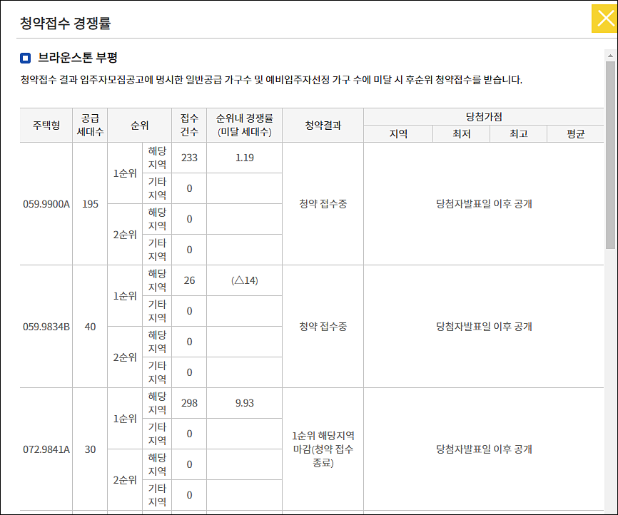 청약 경쟁률 실시간