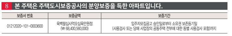 주택도시보증공사의 분양보증을 득한 아파트입니다. 아래 정보 참고하세요.