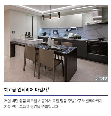 마지막으로 내부는 거실부터 욕실까지 명품 인테리어는 물론, 독일 주방가구 노빌리아 등 최고급 제품으로 디테일하게 준비되어 청담동 이상의 High-End 주거공간을 선사하고 있다.
