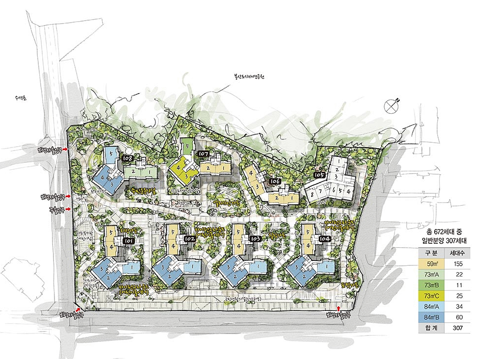 가점이 높다면 경쟁률이 높은 타입에 청약을 넣어도 좋겠으나 꼭 당첨이 되고 싶다면 가장 경쟁이 낮을 평형 타입에 넣어주세요. 로얄동 로얄층이 많은 곳이, 정문과 가깝고 단지내 편의시설 사용하기 좋고 상가 이용하기 좋은곳. 뷰가 좋고 향이 좋은 곳이 매력적인 곳이죠.