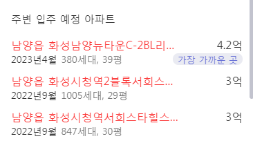 주변 입주 예정 아파트의 시세를 체크하면 답을 얻을 수 있습니다. 39평 4.2억 29평 3억