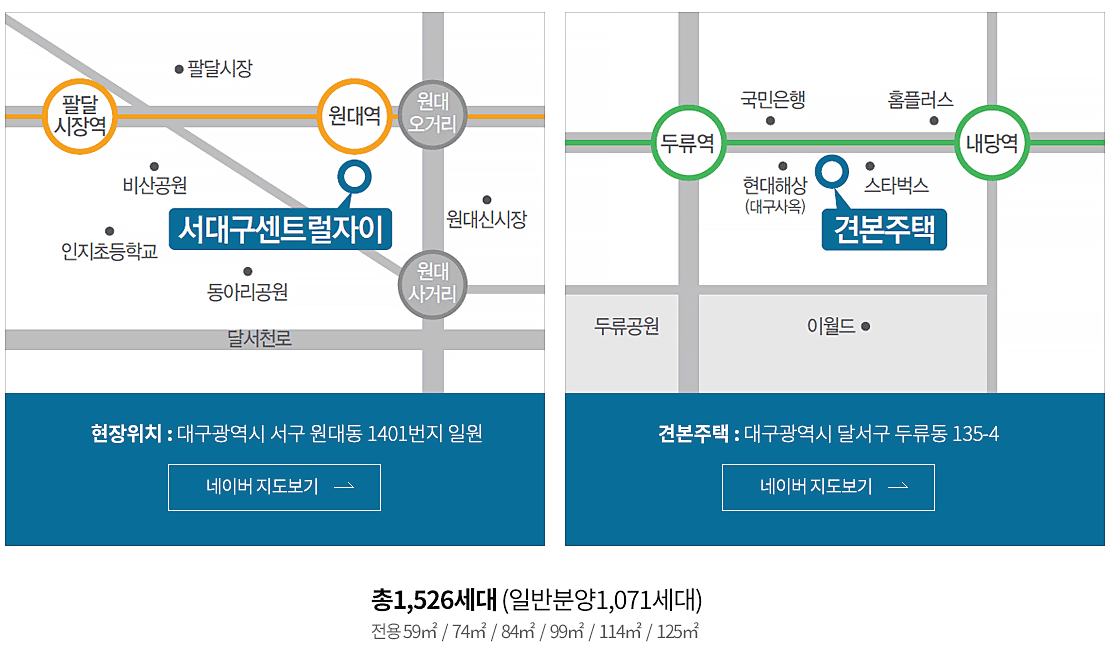 각종 브랜드 평가 1위에 빛나는 ‘자이’는 특히 대구에서 압도적인 선호도를 보이고 있다. 해당 단지에 대해서 더 알아보실 분들은 네이버 다음 검색창에서 단지명 서대구센터를자이 검색해 보세요.