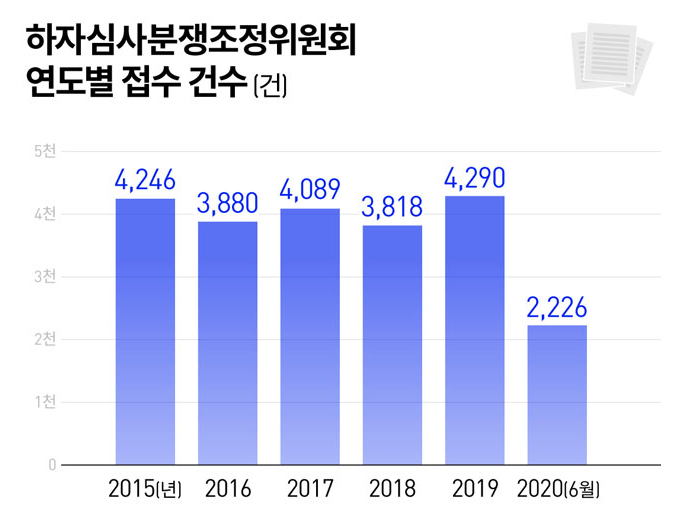 국토교통부에 따르면 하자심사분쟁조정위원회에 접수되는 분쟁조정 신청은 매년 4천 건 안팎입니다. 올 상반기까지 접수된 신청 건수만 이미 2천2백 건을 넘어섰습니다.