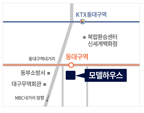 그럼 다시 더샵 수성라크에르 단지입니다. 단지의 견본주택은 대구광역시 동구 신천동 328-1번지 동대구역 2번 출구 인근에 있다. 청약당첨자에 한해 방문할 수 있다.