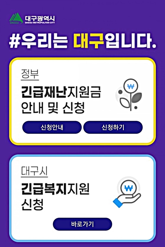 드디어 대구희망지원금(2차생계자금)을 대구시민 1인당 10만 원을 지급합니다. 자세한 내용은 아래를 참고해주세요!!