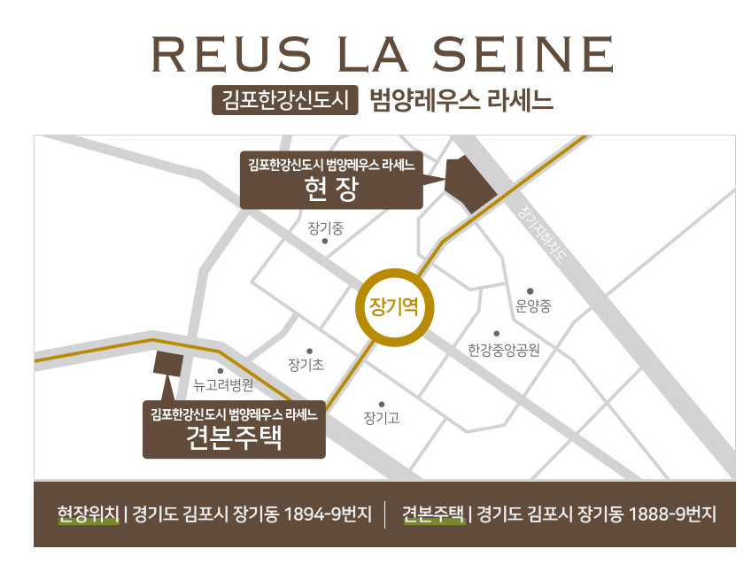 경기도 김포시 장기동 1894-9번지 일원에 들어서는 김포한강신도시 범양레우스 라세느는 범양건영이 시공하며, 총 286가구로 각 세대는 지하 1층~지상 4층, 전용면적 84㎡ 규모다.
