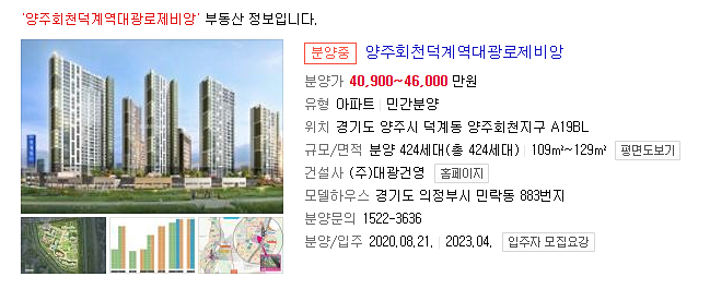 양주회천 덕계역 대광로제비앙 입주자모집공고