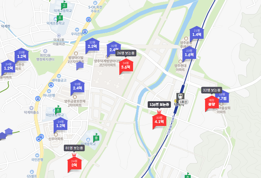 양주회천 덕계역 대광로제비앙 인근단지 시세