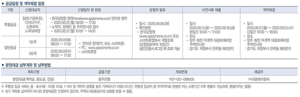 양주회천 덕계역 대광로제비앙 청약 절차
