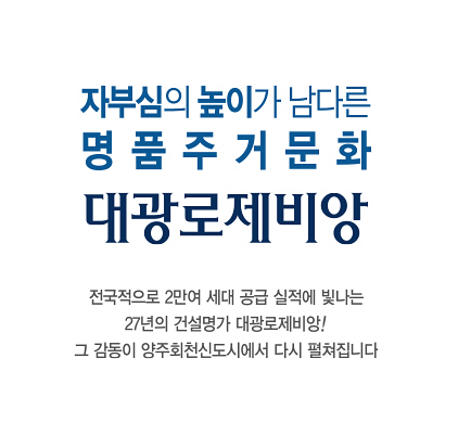 대광건영은 경기 양주 회천신도시 A19블록에 조성하는 ‘양주회천 덕계역 대광로제비앙’ 견본주택 21일 개관하고 분양을 시작합니다. 자세한 내용은 아래를 참고해주세요!!