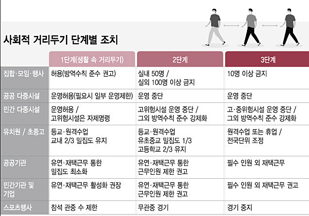 코로나 3단계 기준 : 사회적거리두기 1단계 2단계 3단계 기준