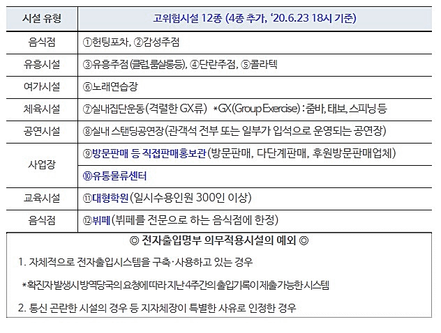참고사항: 거리두기 단계는 6월에 만들어진 기준입니다.