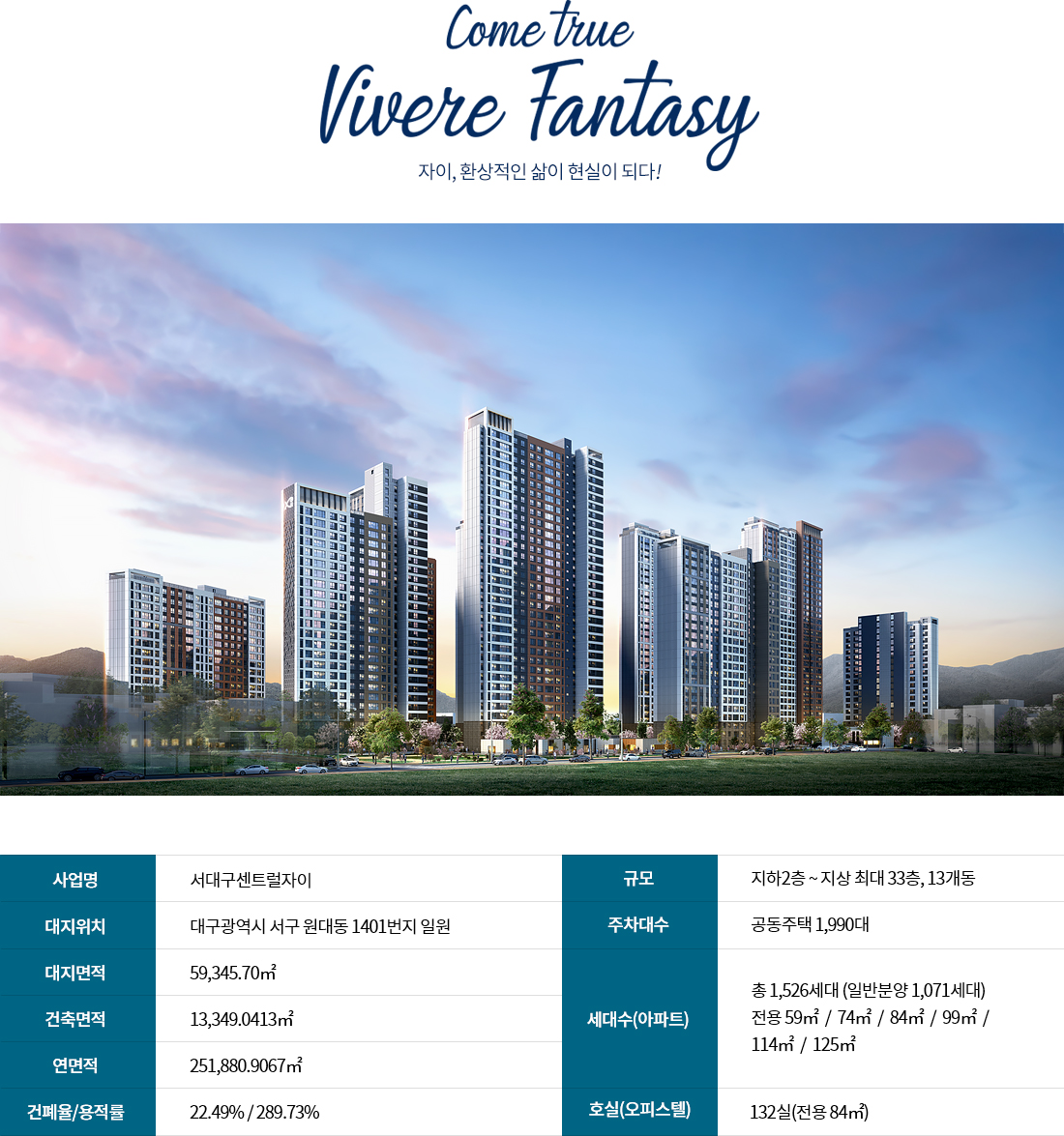 Vivere fantasy 자이, 환상적인 삶이 현실이 되다! 아파트 총 1,526세대 대단지, 오피스텔 132실