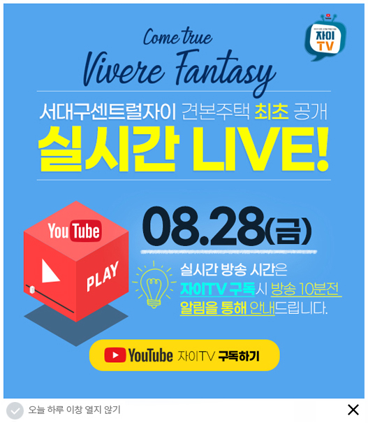 견본주택에 방문하기 어려운 수요자를 위해 유튜브 '자이TV'에서 견본주택 라이브 방송을 실시할 예정이다. 방송은 오는 28일 예정이다. 정확한 시간은 자이TV 및 카카오톡 자이 플러스친구를 통해 공지될 예정이다.