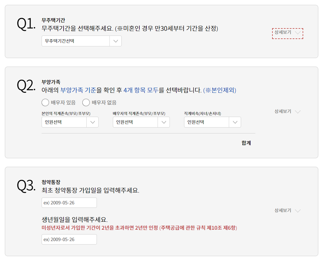 무주택기간 / 부양가족수 / 청약통장 가입일