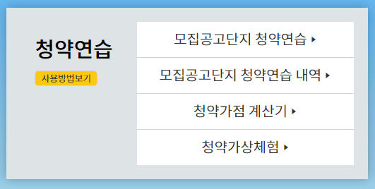 청약홈 사이트 들어오시면 청약 연습 코너가 있는데요.
