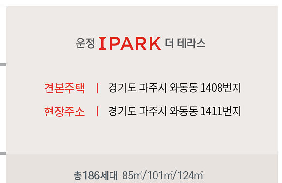 HDC아이앤콘스가 9월중 경기 파주시 와동동 1411번지 일대에 짓는 ‘운정 아이파크 더 테라스’ 분양합니다. 자세한 내용은 아래를 참고해주세요!!