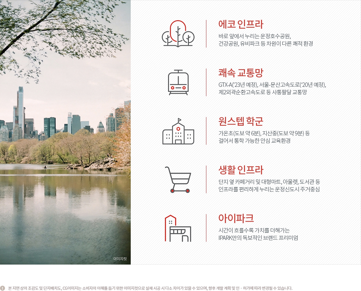 ‘운정 아이파크 더 테라스’에서는 신도시의 편리한 인프라를 누릴 수 있으면서도 자연 친화적 생활이 가능하다. 자세한 내용은 아래를 참고해주세요!!