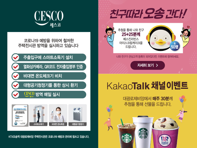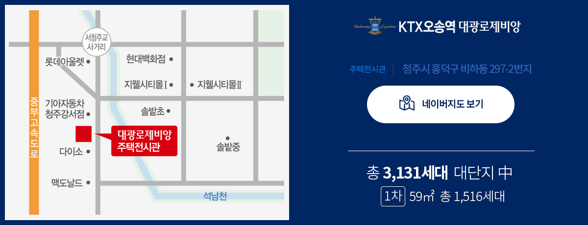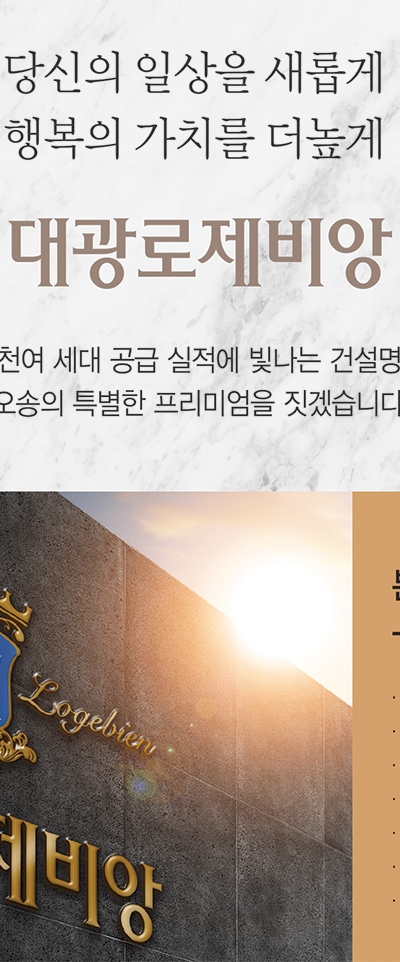 대광건영은 충북 청주시 오송읍 봉산리 오송바이오폴리스지구 B01블록에 조성하는 ‘KTX오송역 대광로제비앙’ 의 사이버 모델하우스를 오는 28일 오픈하고, 본격 분양에 나선다. 자세한 내용은 아래를 참고해주세요!!