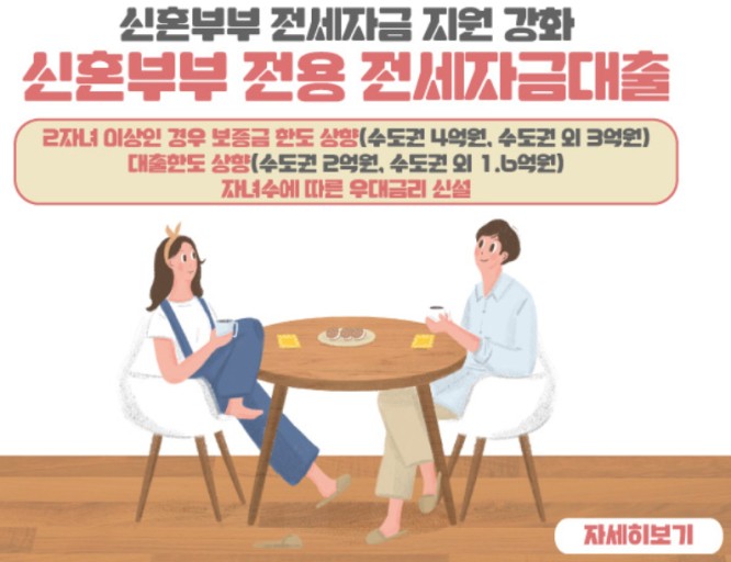 ※ 단, 전세보증금 80%이내에서 신혼부부는 수도권 2억, 지방 1.6억원/ 2자녀 이상 가구는 수도권 2.2억원, 지방 1.8억원이내