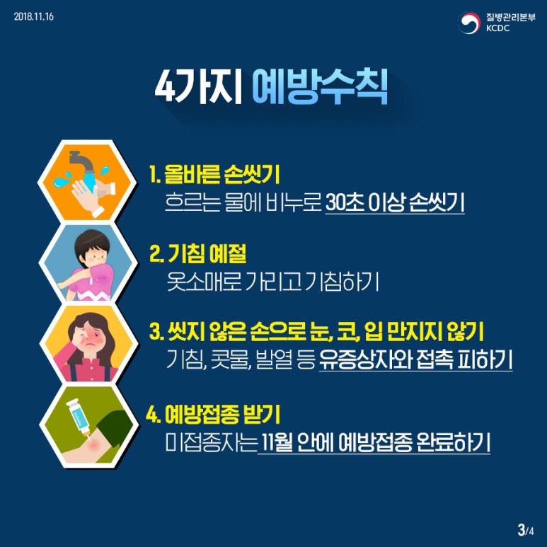 독감이 유행하는 시기는 12월에서 2~4월까지입니다.