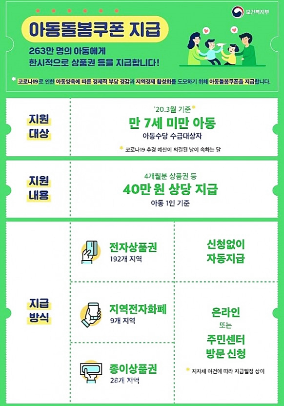카드포인트 형태로 준 아동돌봄쿠폰은
