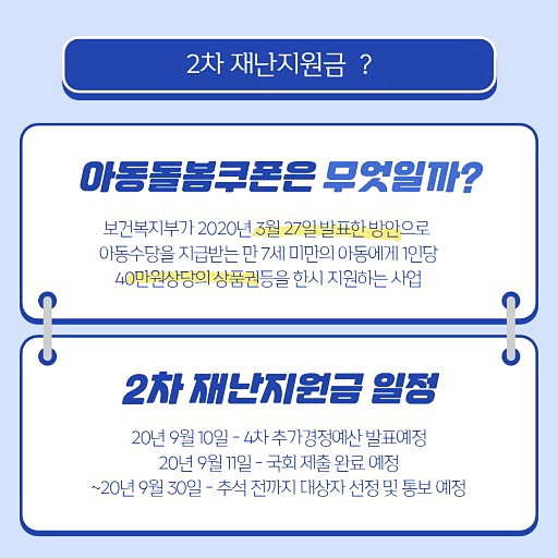 | 2차 재난지원금 확정 : 피해맞춤형 재난지원 총정리 (0) | 2020.09.10 |