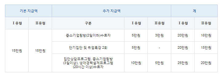 지급대상은 취업성공패키지